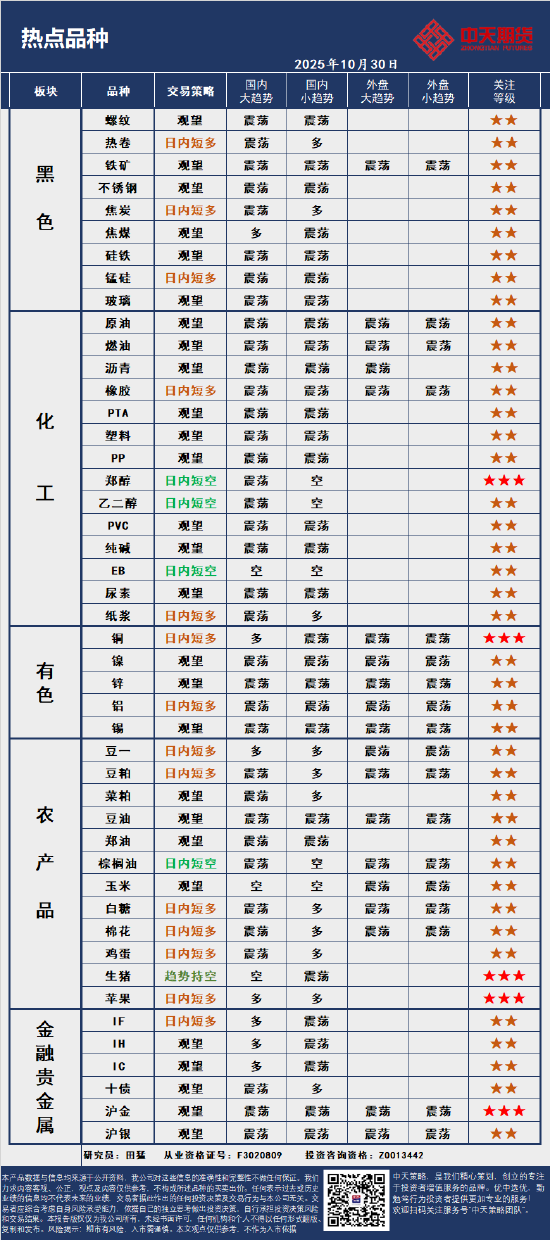 正文 中天策略:10月30日市场分析 创领集团 V管理员 /2025-10-30 17:30:03/3阅读/0评论 1030 文章最后更新时间2025年10月30日,若文章内容或图片失效,请留言反馈! 新浪合作大平台期货开户 安全快捷有保障