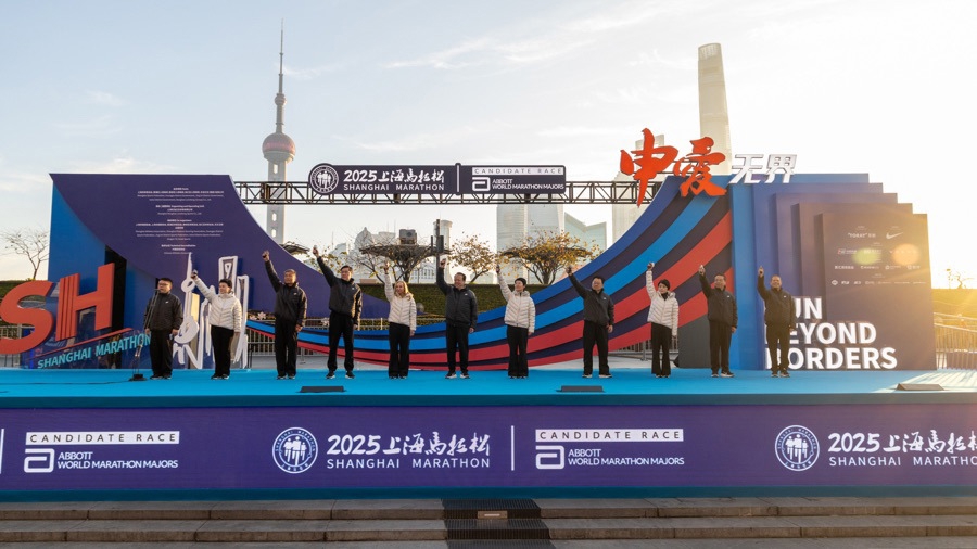 11月30日上午,2025上海马拉松在申城如期启幕。上海市市长龚正点亮2025上海马拉松路赛道,并与世界马拉松大满贯联盟首席执行官道内斯通、上海市副市长解冬等中外嘉宾一道,为比赛鸣枪发令。